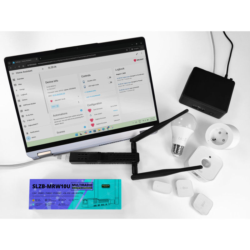 • Runs SLZB-OS with integrated management UI, logs, diagnostics, and OTA updates